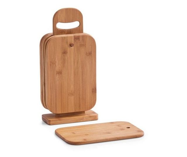 Zestaw 6 desek do krojenia Zeller, bambus, w tym stojak, 15 x 7 x 32 cm