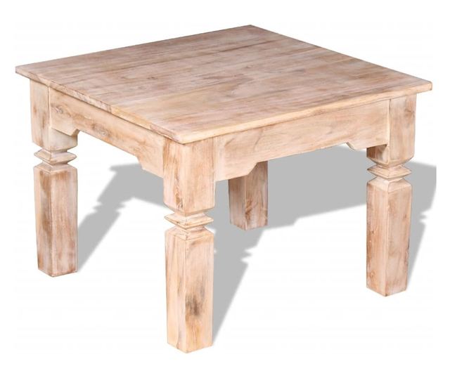 Solidny blat zapewnia stabilną i bezpieczną powierzchnię, na której można postawić napoje, kosz owoców, wazon lub inne elementy dekoracyjne. Cztery mocne nogi dodają konstrukcji solidności. Ława kawowa jest ręcznie wykonana z litego drewna. Doskonałe rzemiosło i piękne słoje drewna sprawiają, że każdy mebel jest unikalny i nieco różni się od następnego.