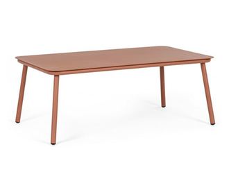 Materiał ramy: Aluminium malowane elektrostatycznie. Materiał elementów montażowych: Stal nierdzewna. Wymiary: Długość 104 cm x Szerokość 61 cm x Wysokość 40,5 cm. Kolor: Ceglasta czerwień. Ten mebel charakteryzuje się wyważonymi proporcjami i wyraźnymi kształtami, dzięki czemu z nowoczesną elegancją umebluje każde wnętrze, zarówno w domu, jak i w biurze. Stolik charakteryzuje się doskonałą solidnością i wytrzymałością, a jednocześnie niezwykle prostym i uniwersalnym designem, idealnym do zaspokojenia każdego rodzaju potrzeb. Jego estetyka jest wszechstronna i funkcjonalna, dzięki czemu jest idealnym rozwiązaniem do aranżacji formalnych i nieformalnych okazji, gdzie przyciąga uwagę dzięki swojemu stonowanemu i awangardowemu designowi.