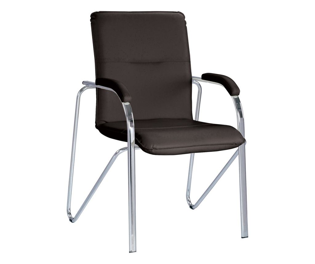 Krzesło dla gości MULLER Soft, z wygodnym siedziskiem i oparciem, wykonane jest z ekologicznej skóry. Krzesło ma błyszczący metalowy stelaż, metalowe podłokietniki, częściowo tapicerowane. Krzesła można układać w stos do 4 jednostek.