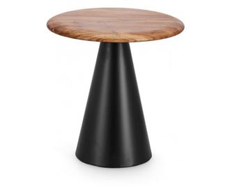 Materiał blatu: Drewno akacjowe. Materiał podstawy: Stal malowana proszkowo. Drewno posiada naturalne wykończenie. Wymiary: Średnica 45 cm x Wysokość 46 cm. Kolor blatu: Brązowy. Kolor podstawy: Czarny.