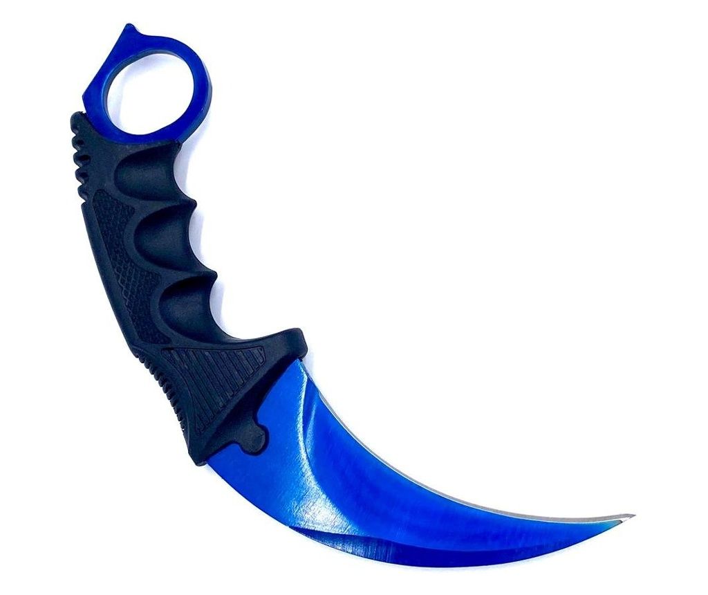 Nóż typu karambit z ostrzem CS:GO, pochwą i smyczą, metaliczny niebieski