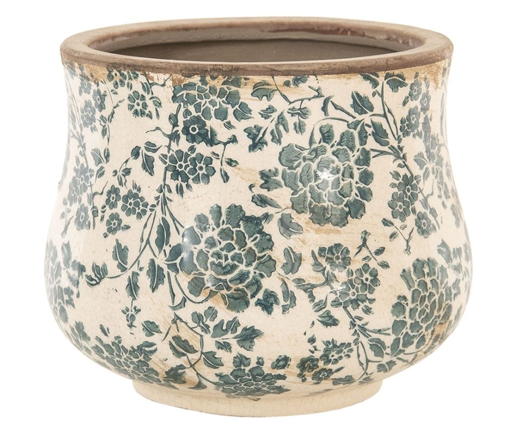 Dekoracyjna doniczka, biało-brązowa ceramika, Ø 10 cm x 10 wys.